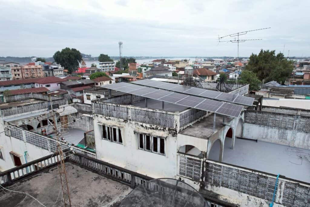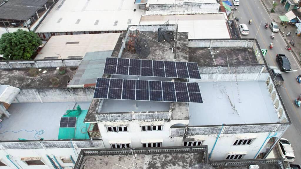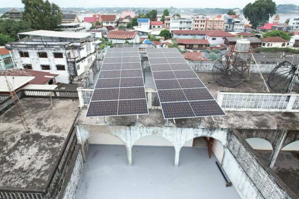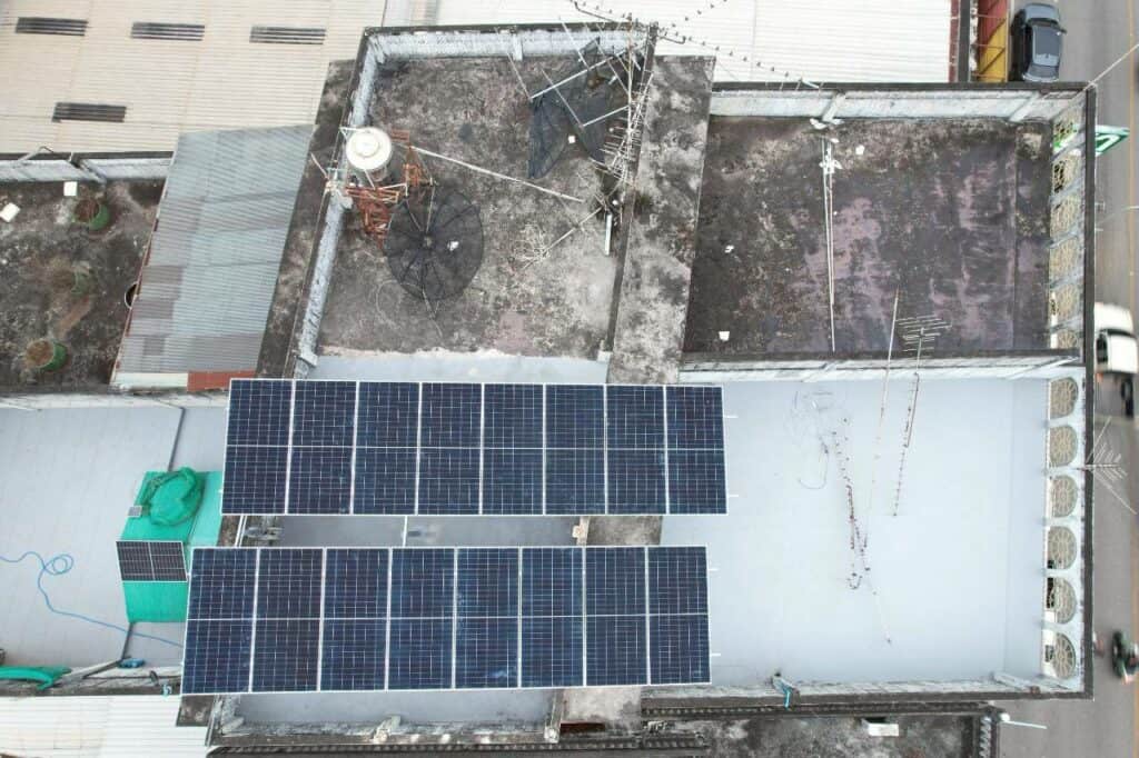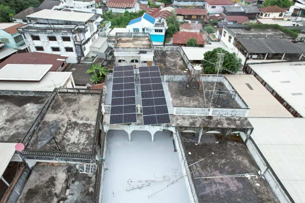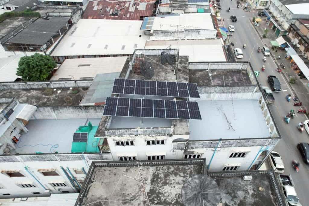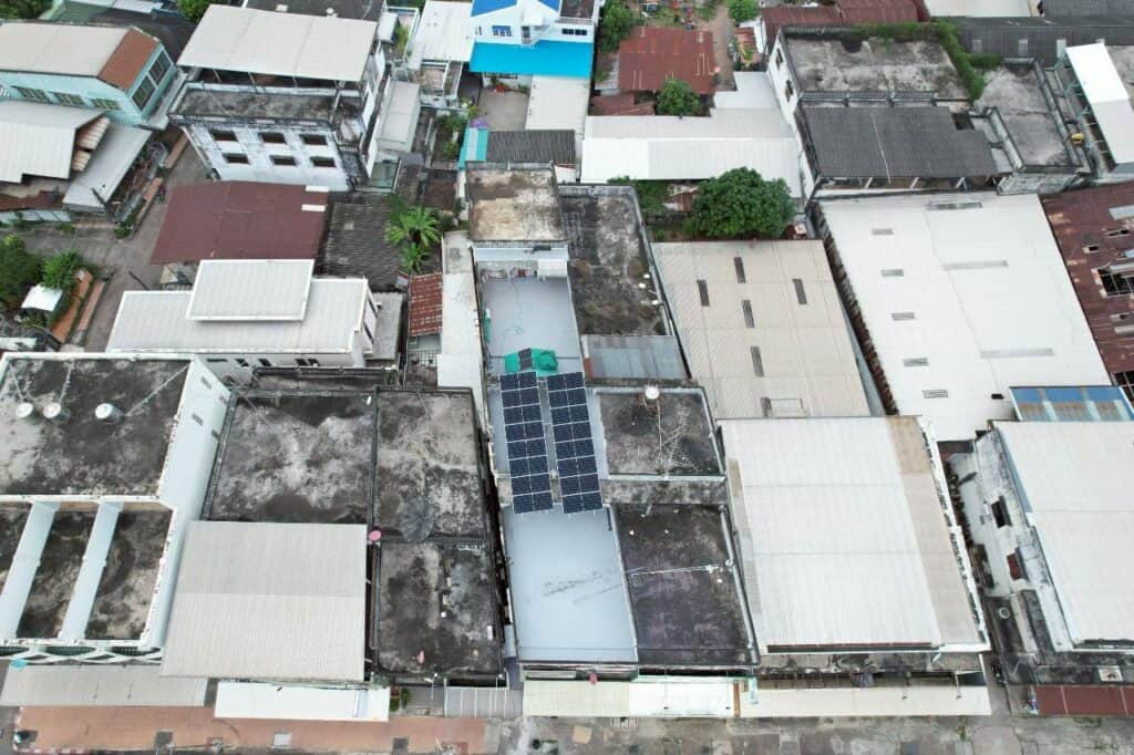 อีกหนึ่งผลงานการติดตั้งโซล่าเซลล์สำหรับอาคารพาณิชย์ หน้างานที่จังหวัดหนองคาย ลูกค้าเลือกติดตั้งระบบ On Grid ขนาด 10kW แบบ 3 เฟส ที่ช่วยลดภาระค่าไฟได้อย่างชัดเจน เหมาะสำหรับอาคารที่มีการใช้ไฟต่อเนื่องทั้งวัน เช่น ปั๊มน้ำ มอเตอร์ เครื่องใช้ไฟฟ้าขนาดใหญ่ หรือกิจการที่ต้องการระบบไฟเสถียรตลอดเวลา ทีมงานออกแบบและติดตั้งแผงบนดาดฟ้าโดยทำ โครงเหล็กยกสูง เพื่อรับน้ำหนักและแรงลมได้ดี พร้อมจัดวางองศาให้แผงรับแสงได้เต็มประสิทธิภาพตลอดทั้งวัน
