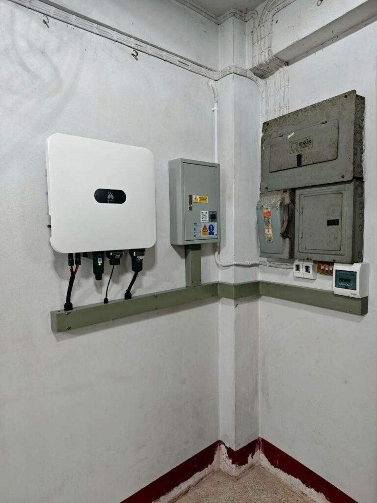 พลังงานจากแสงอาทิตย์จะถูกแปลงเป็นไฟฟ้ากระแสสลับผ่านอินเวอร์เตอร์ Huawei และจ่ายเข้าระบบไฟฟ้าภายในอาคารโดยตรง ระบบ On Grid ช่วยให้ใช้งานไฟจากโซล่าร่วมกับไฟจากการไฟฟ้าได้อย่างราบรื่น ลดค่าไฟรายเดือนได้ทันทีโดยไม่ต้องใช้แบตเตอรี่