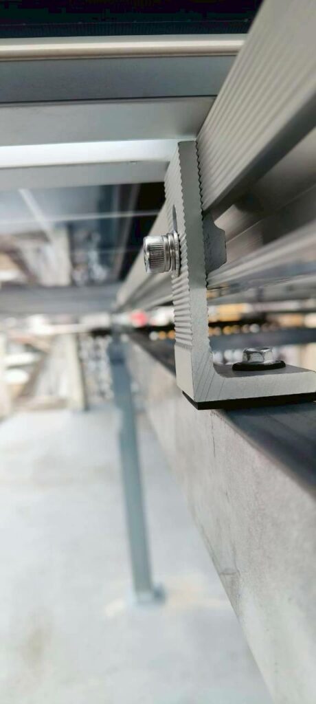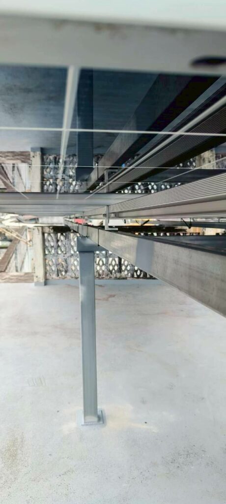 - โครงเหล็กรับแผงบนดาดฟ้า