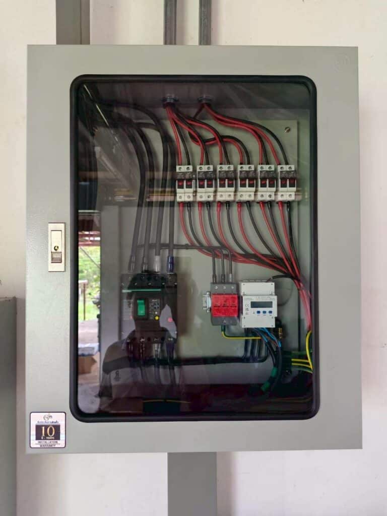 - ตู้ Protection ครบชุด ทั้ง DC Fuse / AC Breaker / Surge Protection