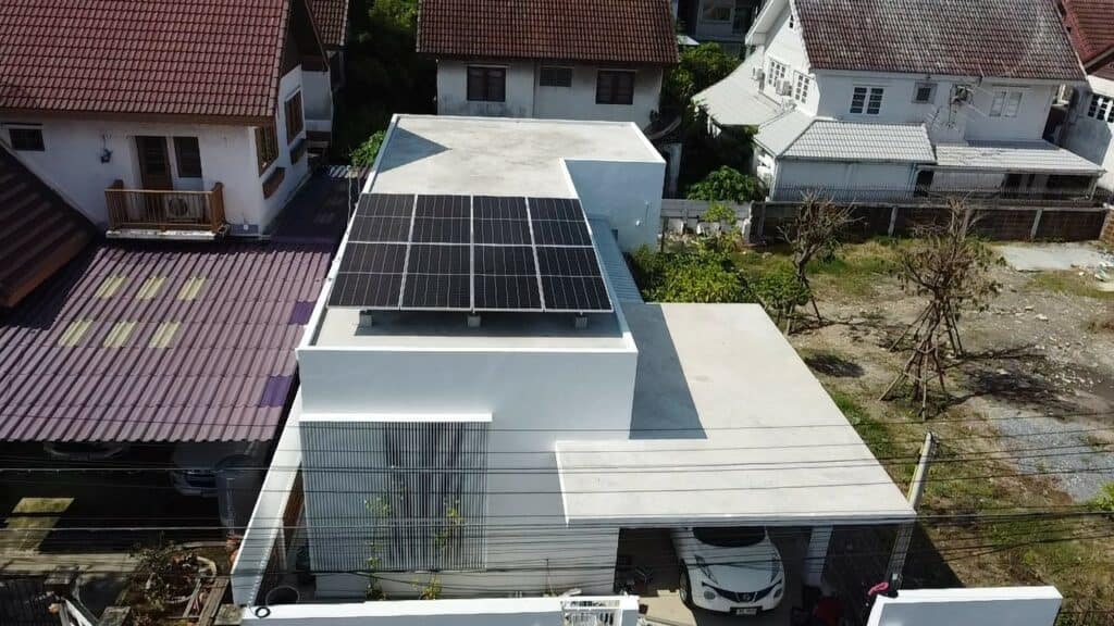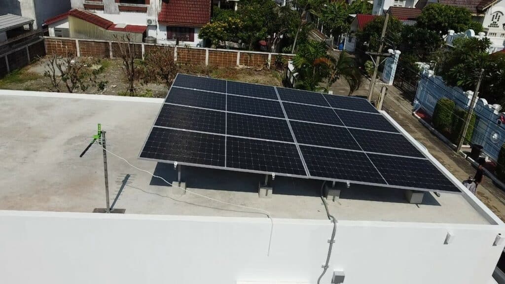 ปกติค่าไฟของลูกค้านั้นอยู่ที่ประมาณเกือบ 2,000 บาทต่อเดือน ต้องการผลิตไฟฟ้าไว้ใช้เอง และลดค่าไฟในเวลากลางวันลง ซึ่งลูกค้าเน้นใช้ไฟฟ้ากลางวันเป็นส่วนใหญ่ และต้องการขายไฟฟ้าคืน เบื้องต้นมีการพูดคุย สำรวจหน้างาน ได้ข้อสรุปว่าลูกค้าเลือกติดตั้งที่ขนาด 5kw 1phase และเพิ่มโครงเหล็ก Support แผงโซล่าเซลล์ด้วย ซึ่ง 5kw เป็นขนาดที่เพียงพอต่อความต้องการใช้งานของลูกค้าและหากไฟเหลือก็สามารถขายคืนได้ด้วย (ซึ่งตอนนี้ขายไฟคืนของการไฟฟ้านครหลวงยังทำได้อยู่)