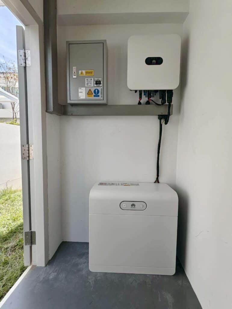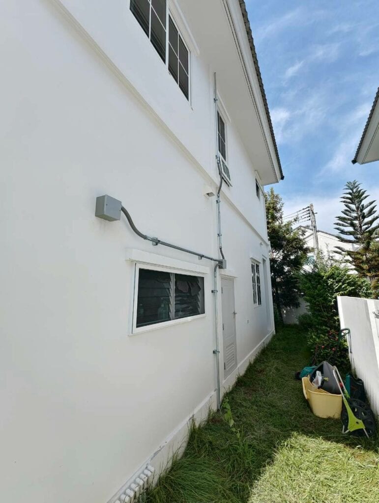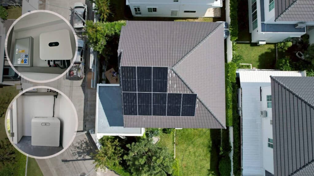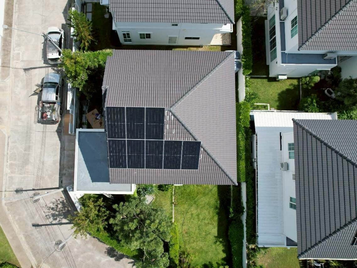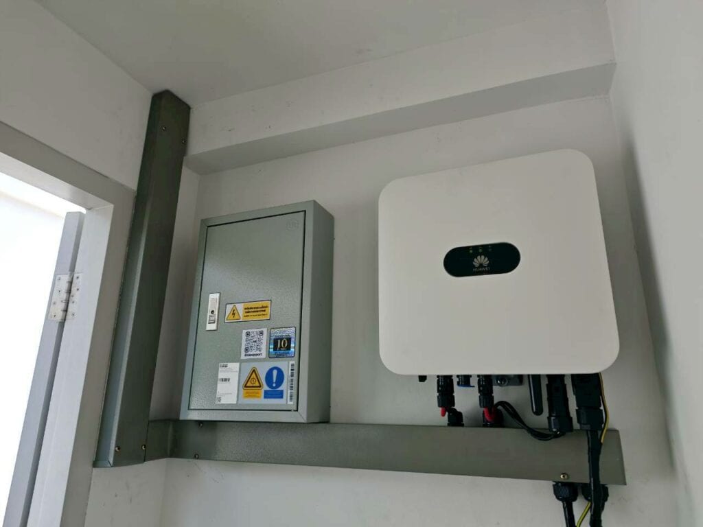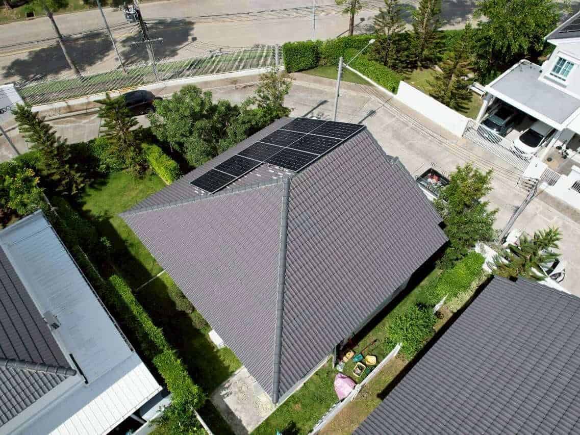 หน้างานนี้ทีมงานเดินทางไปติดตั้งให้ลูกค้าถึงที่จังหวัดเชียงใหม่ ลูกค้ามีค่าไฟอยู่ที่ประมาณ 5,000 บาท ต้องการระบบที่ใช้งานได้ทั้งกลางวันและกลางคืน เลยได้ติดตั้งเป็นระบบ Hybrid ที่เพิ่มแบตเตอรี่เข้ามาช่วยสำรองไฟไว้ใช้ อินเวอร์เตอร์และแบตเตอรี่ของงานนี้เป็นของแบรนด์ Huawei ที่มีประสิทธิภาพสูง รับประกันนาน และดีไซน์ที่ดูดี ทันสมัย เหมาะกับสไตล์ของบ้าน และเซ็ทติดตั้งนี้จะช่วยให้ลูกค้าลดค่าไฟได้ประมาณ 60-70%