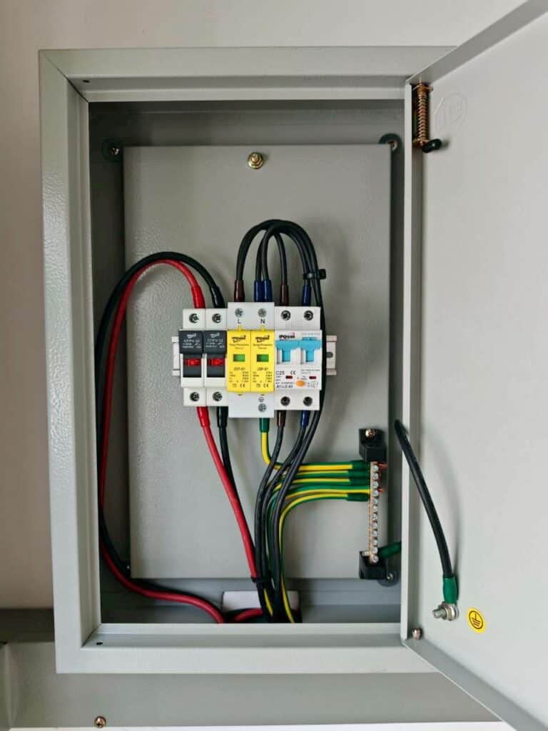 - ตู้ Protection ครบชุด ทั้ง DC Fuse / AC Breaker / Surge Protection