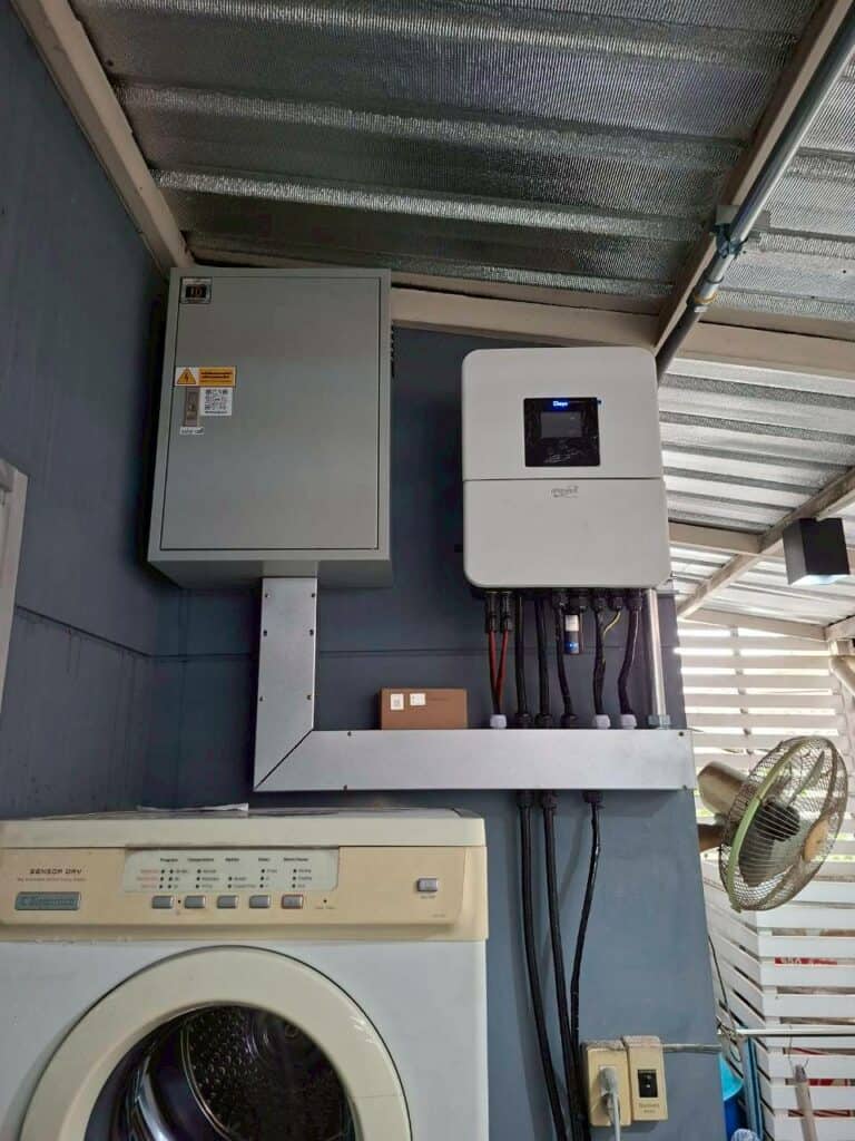 ส่งมอบงานติดตั้งชุดโซล่าเซลล์ระบบ Hybrid ที่ใช้งานได้ทั้ง On Grid และ Off grid หน้างานติดตั้งนี้อยู่ในที่แขวงทุ่งสองห้อง เขตหลักสี่ กรุงเทพมหานคร ลูกค้ามีการใช้ไฟทั้งกลางวันและกลางคืน เลยได้ติดตั้งเป็นระบบ Hybrid ที่ใช้ Inverter แบรนด์ Deye ที่สามารถทำงานได้สองระบบ ใช้งานตอนไฟดับได้ ในเซ็ทนี้ได้เพิ่มแบตเตอรี่เข้ามาเพื่อช่วยสำรองไฟ ขนาดติดตั้งนี้คำนวณมาแล้วว่าเพียงพอต่อการใช้งานของลูกค้าค่ะ