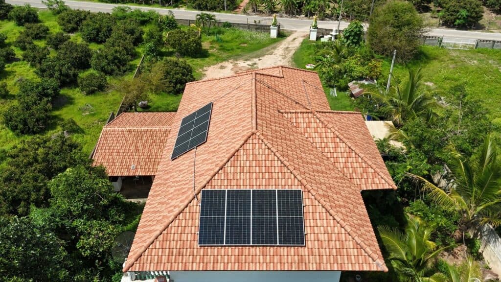 อีกหนึ่งงานติดตั้งโซล่าเซลล์ระบบ On Grid ขนาด 5kW สำหรับบ้านพักอาศัยในจังหวัดพะเยา เหมาะสำหรับผู้ที่ใช้ไฟช่วงกลางวันเป็นหลัก ด้วยระบบที่ไม่ซับซ้อน ใช้อุปกรณ์น้อย ดูแลง่าย ประหยัดพื้นที่ ระบบ On Grid จะทำงานร่วมกับการไฟฟ้าโดยตรง จึงไม่เหมาะกับพื้นที่ที่ไฟดับบ่อย เพราะหากไฟดับ ระบบจะหยุดทำงานทันทีเพื่อความปลอดภัย สำหรับขนาด 5kW นี้ ช่วยลดค่าไฟช่วงกลางวันได้เฉลี่ย ประมาณ 2,000 – 2,500 บาทต่อเดือน เป็นการลงทุนที่คุ้มค่าสำหรับบ้านที่ใช้ไฟฟ้าในช่วงกลางวันอย่างต่อเนื่อง