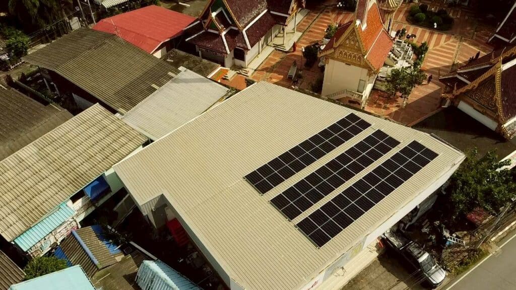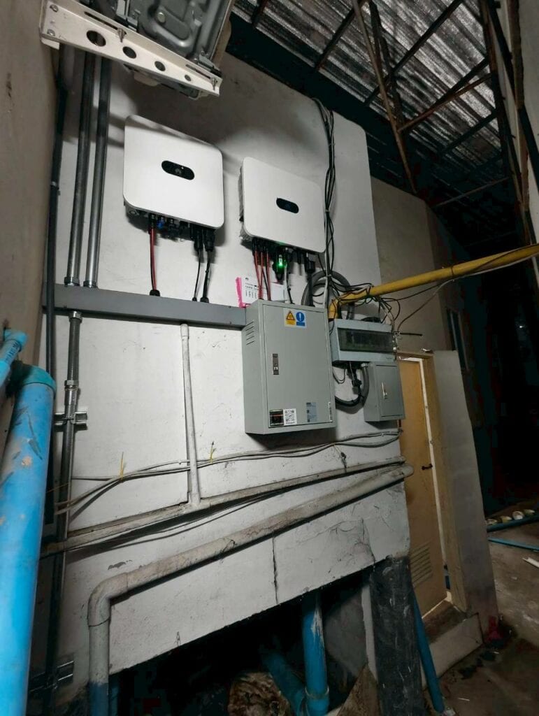 อีกหนึ่งผลงานการติดตั้งโซล่าเซลล์ขนาด 15kW (ระบบไฟ 1 เฟส) หน้างานที่อำเภอเมืองปทุมธานี จังหวัดปทุมธานี ในงานติดตั้งนี้เลือกใช้ แผงโซล่าเซลล์มาตรฐาน Tier 1 เช่นเคยพร้อม อินเวอร์เตอร์ Huawei รวม 2 เครื่อง และระบบ Smart Power Sensor ที่ช่วยตรวจสอบการทำงานได้แบบเรียลไทม์ เพื่อจุดประสงค์หลักคือช่วยลดค่าไฟฟ้าของอาคาร ที่มีการใช้งานไฟฟ้าต่อเนื่องทั้งโดยเฉพาะกลางวันที่มากเป็นพิเศษ โดยระบบนี้สามารถผลิตไฟฟ้าได้เฉลี่ย 50–70 หน่วยต่อวัน หรือประมาณ 1,500–2,000 หน่วยต่อเดือน